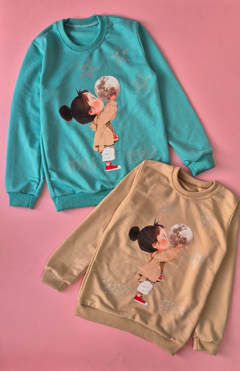 بلوز دخترانه دختر و ماه با ستاره ی نگینی پنبه ی یکرو لطیف و خنک