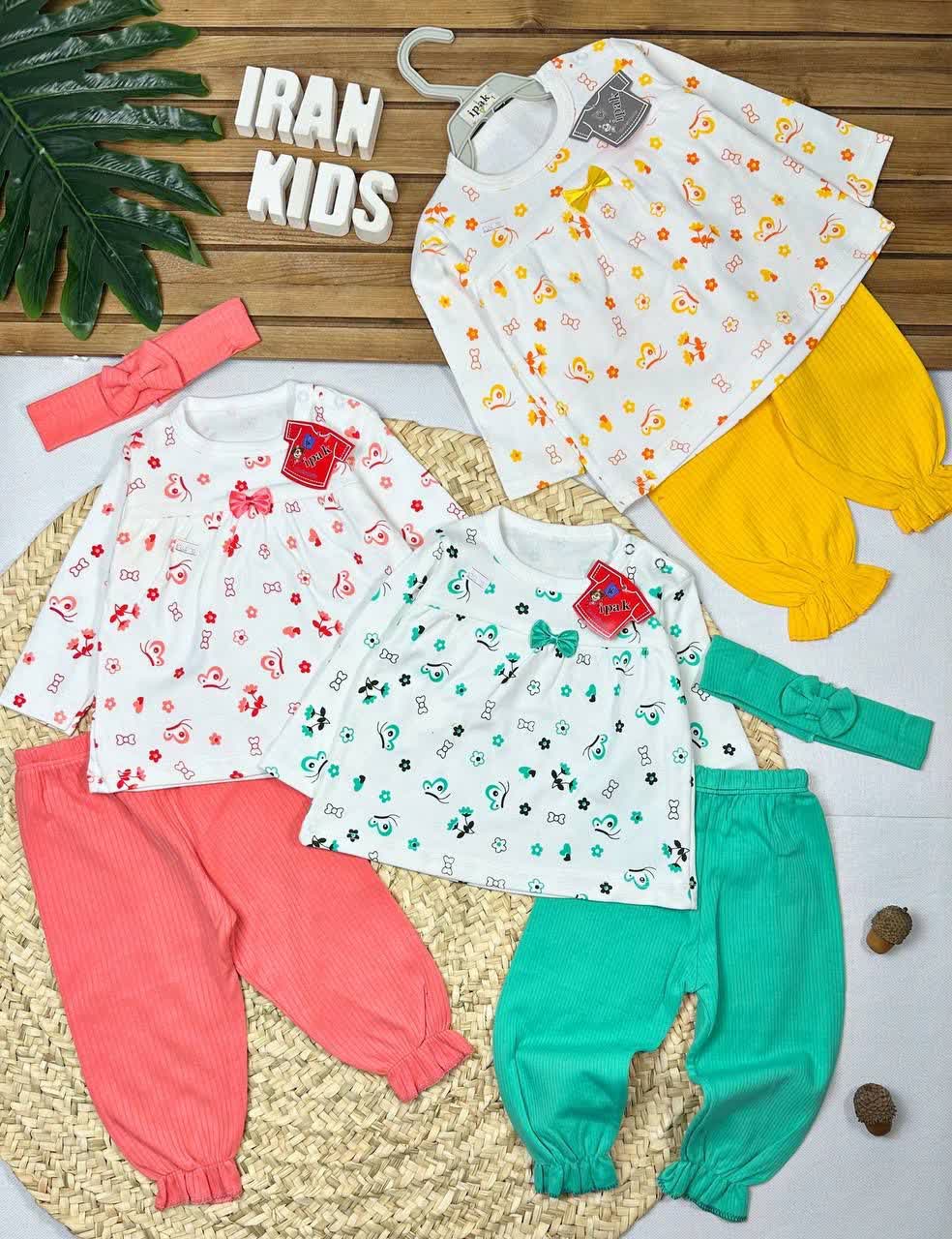 ست سه تیکه‌ی بلوز شلوار هدبند پنبه ی درجه یک دخترانهناموجود