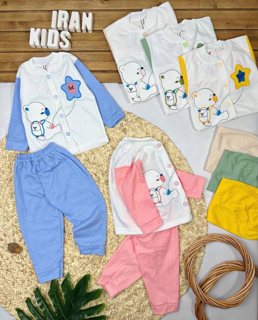 سه تیکه ی نوزادی بلوز شلوار زیر دکمه ی پنبه