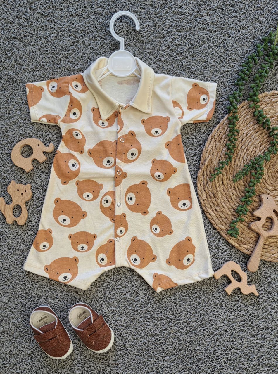 رامپر پنبه ی تمام چاپ پسرانه طرح خرس