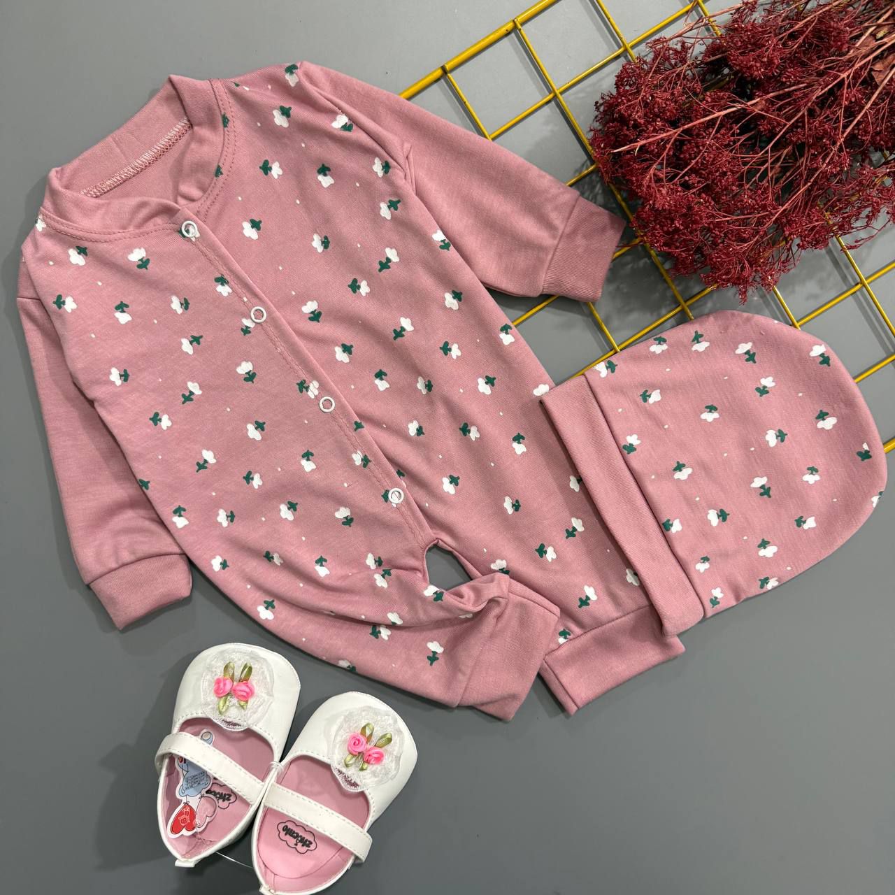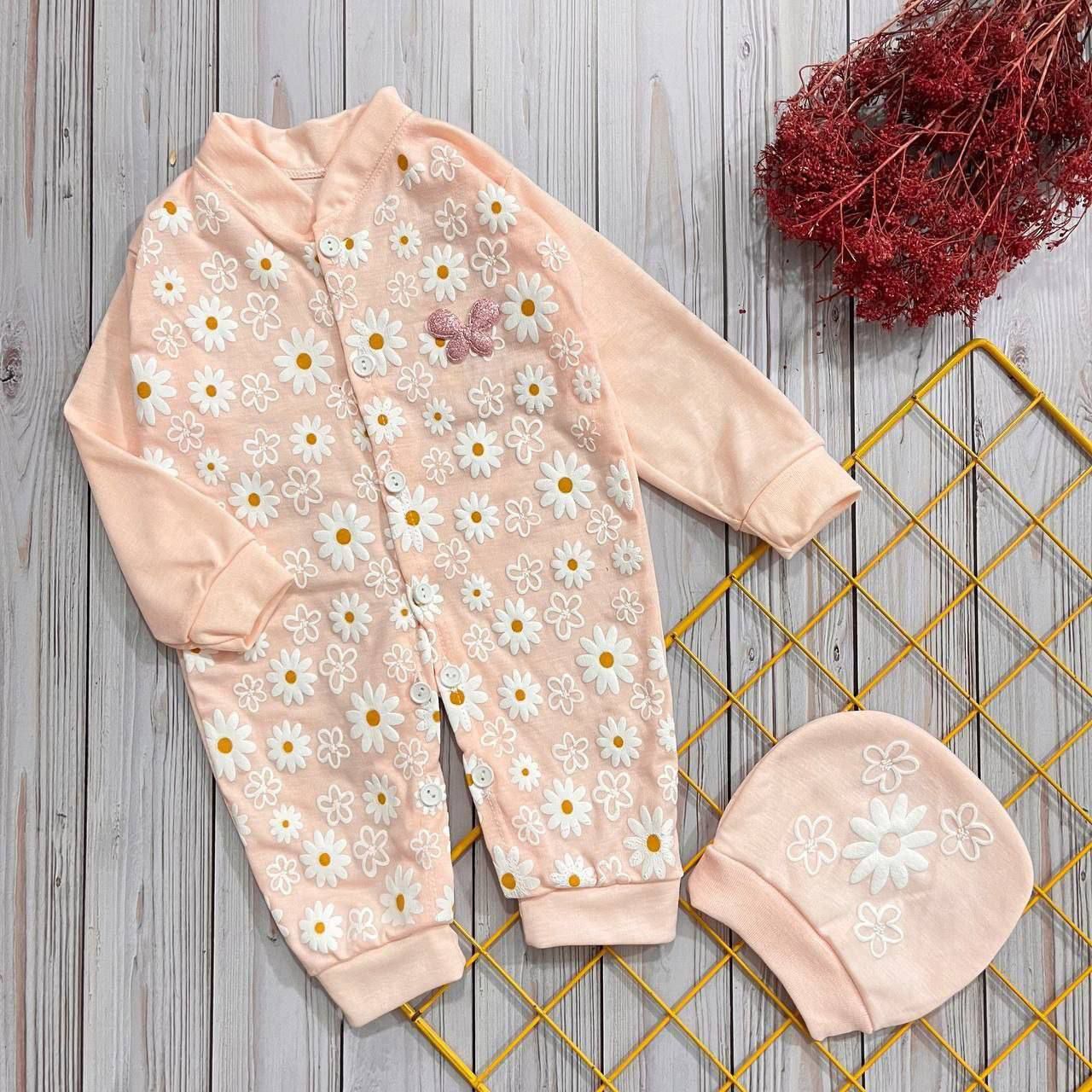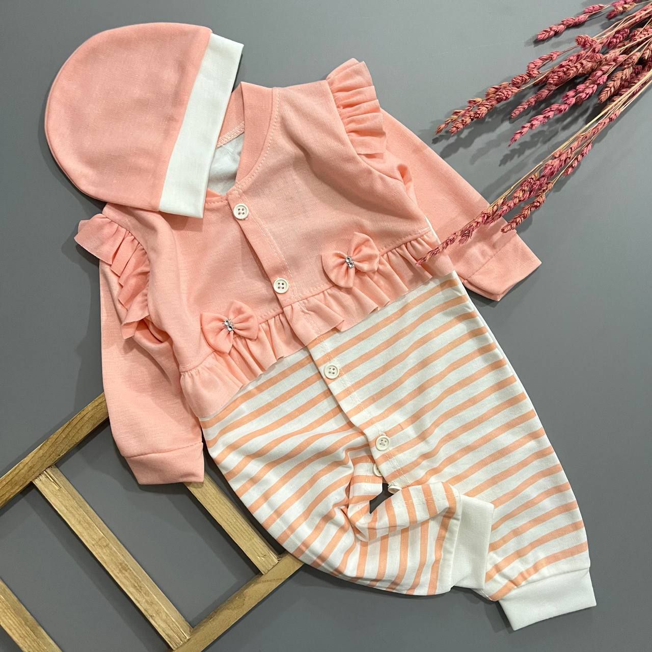 سرهمی دکمه دار و کلاه دخترانه ی پنبه