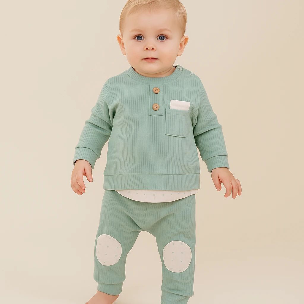 بلوز شلوار طرح جیب‌دار پنبه کبریتی اسپرت نوزادی