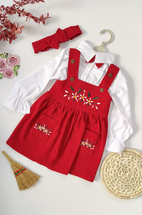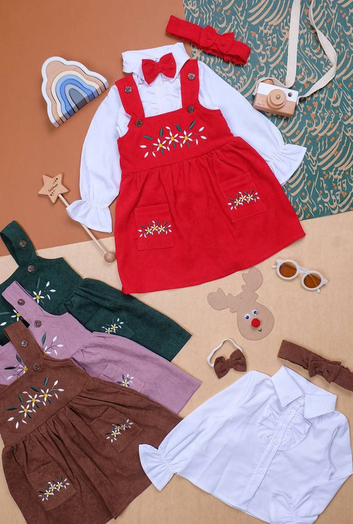 ست چهارتیکهی شومیز، سرافون، هدبند،پاپیون دخترانهی گلدوزی شده