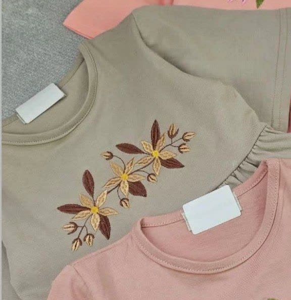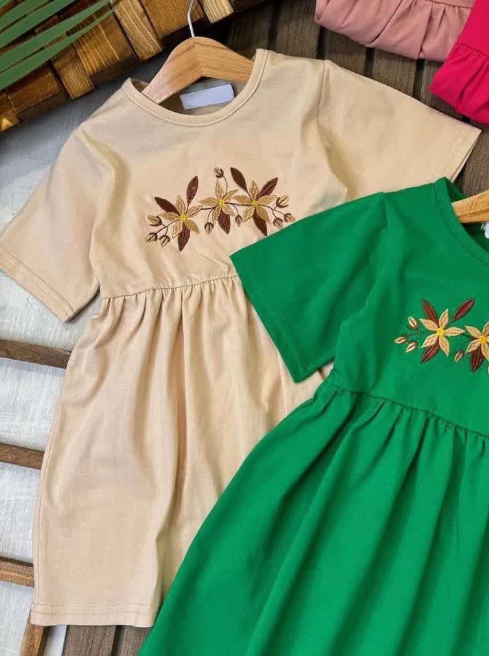 پیراهن آستین کوتاه دخترانه پنبه ی گلدوزی گل