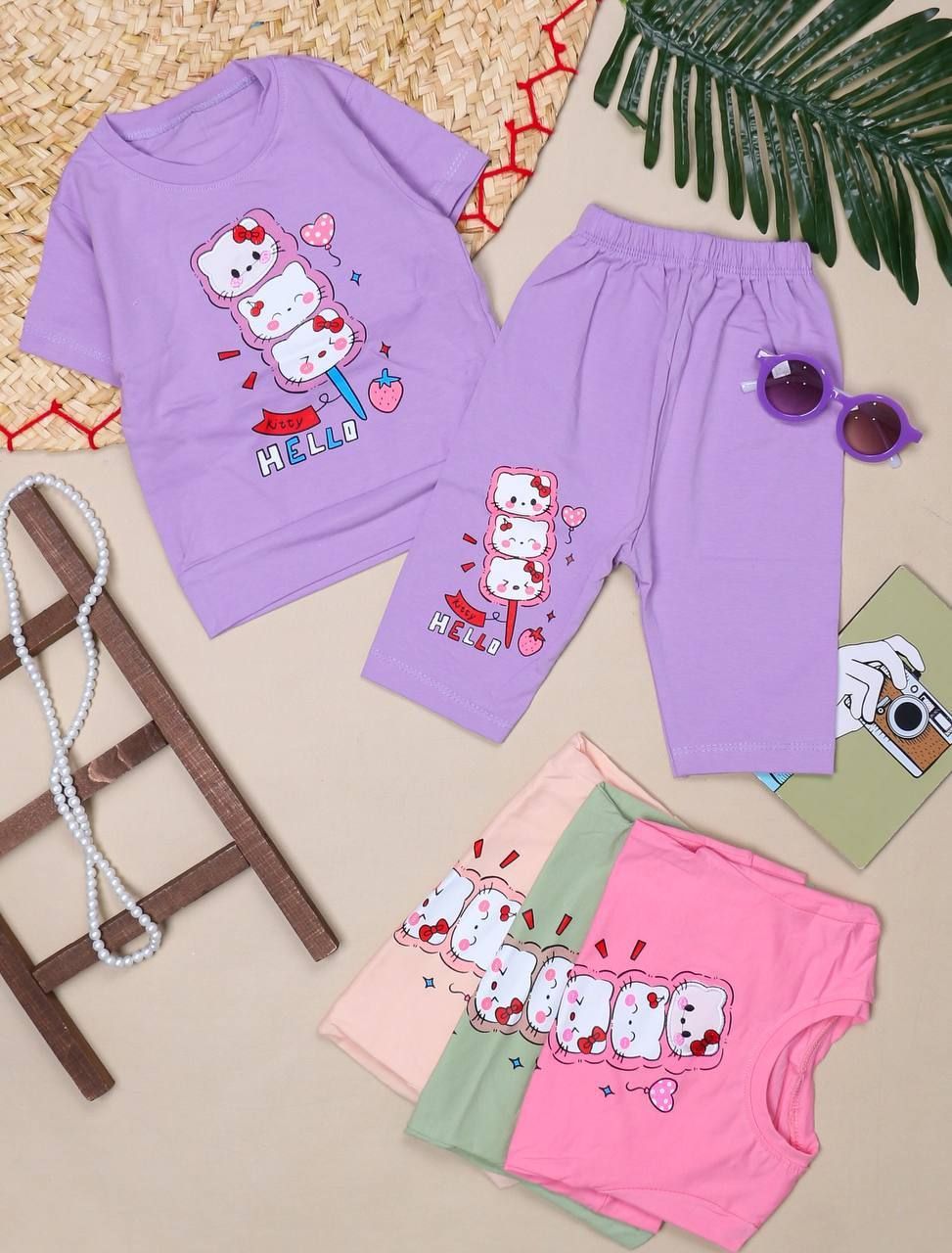 تیشرت شلوارک دخترانه پنبه ی گلدوزی طرح بستنی