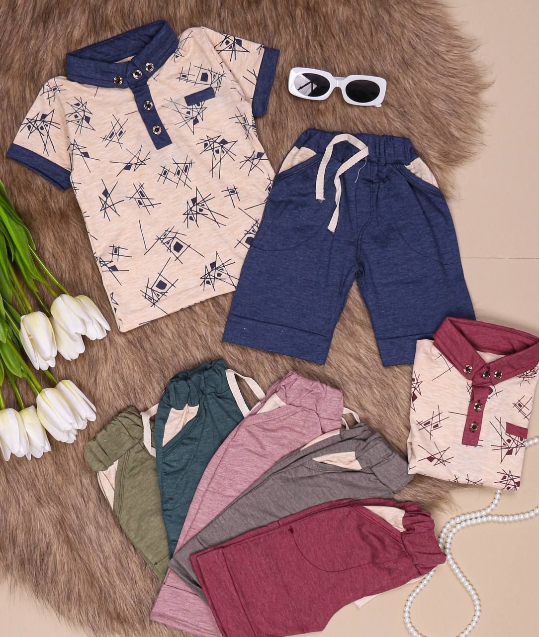 تیشرت شلوارک یقه دیپلمات پسرانه ملانژ درجه یک