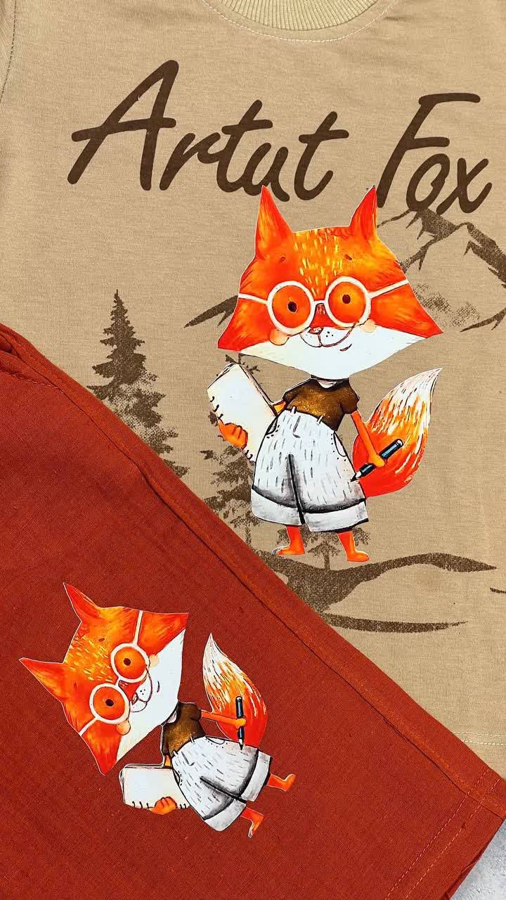 تیشرت شلوارک پنبه لنین طرح روباه دانا
