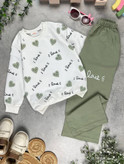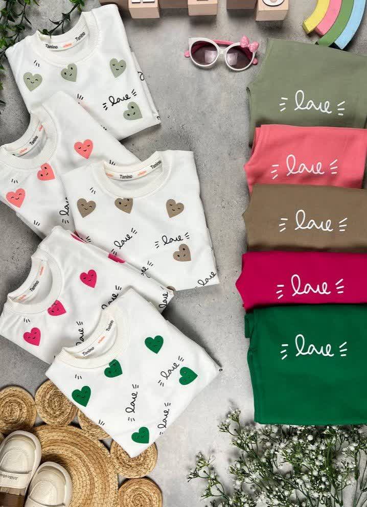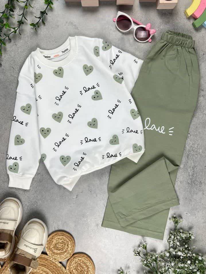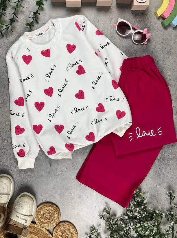 بلوز پنبه با شلوار بگ کتان پنبه دخترانه ی طرح قلب