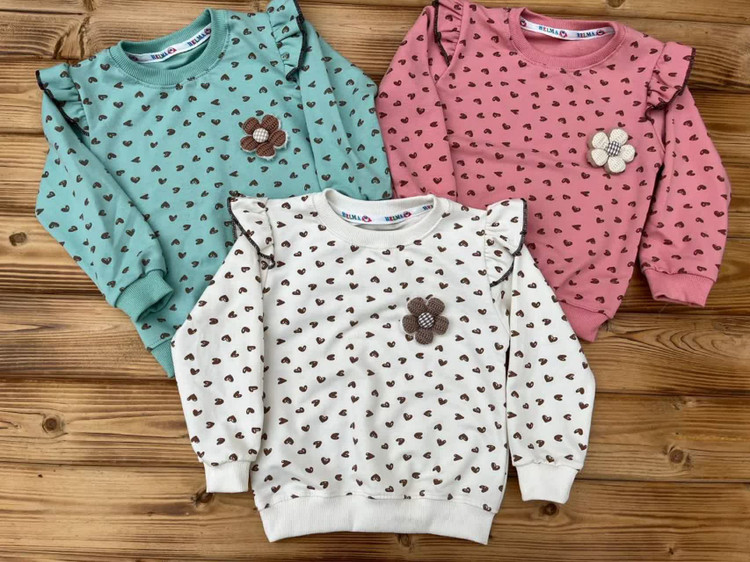 بلوز تک آستین بلند سرشونه چیندار طرح قلب، با گل برجسته، برای استفاده ی روزمره و مهمانی دختران دلبندتان
