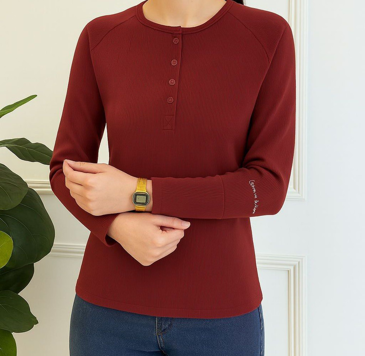 بلوز آستین بلند یقه ۴ دکمه