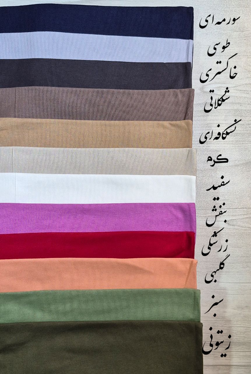 رنگبندی: سبززیتونی سیر، سبز کمرنگ، گلبهی، زرشکی، بنفش، سفید، کرم، خاکی، گردویی، مشکی، طوسی، سورمهای