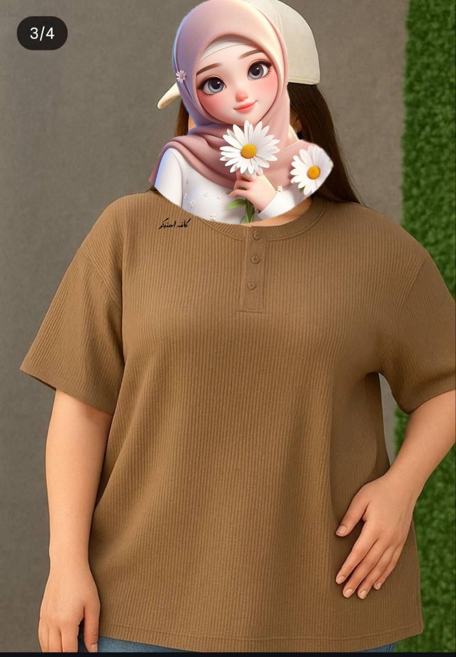 تیشرت پنبه کبریتی یقه سه دکمه قواره بزرگ