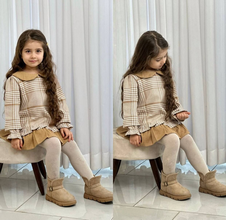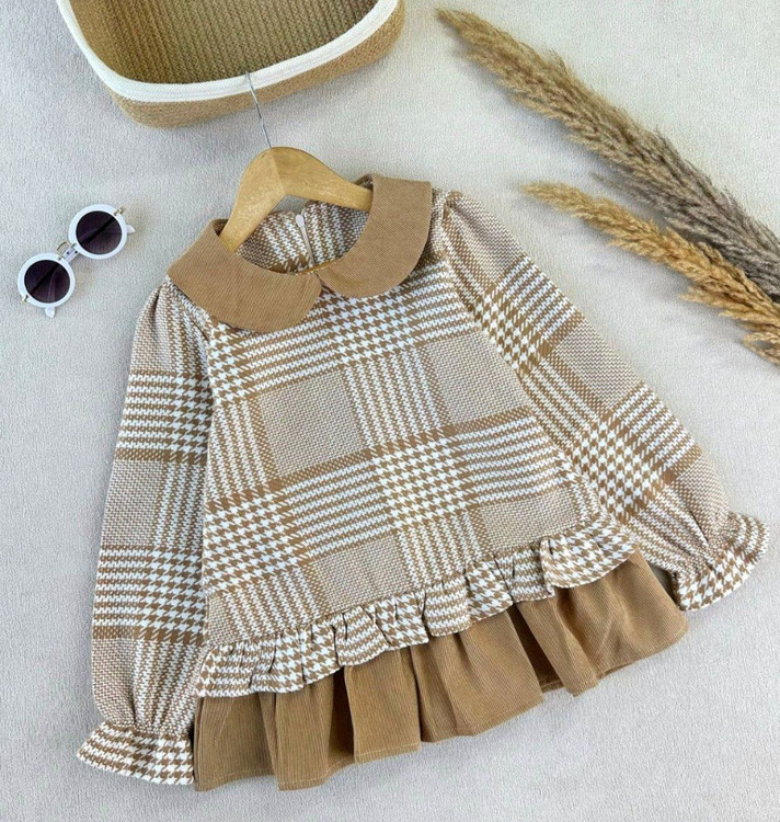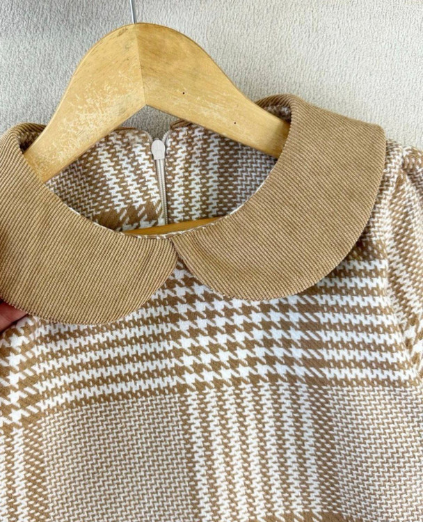 تونیک دخترانه چهارخونه یقه ب‌ب پیچازی