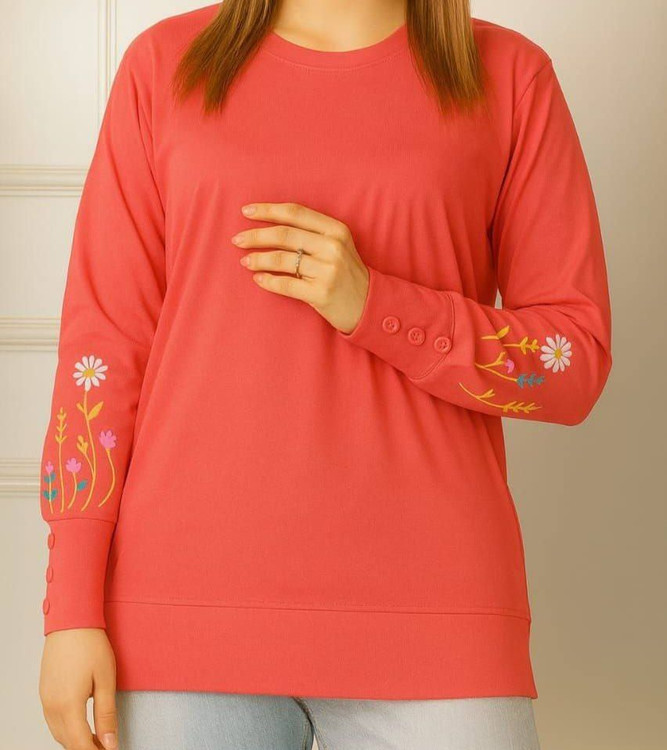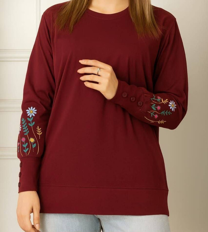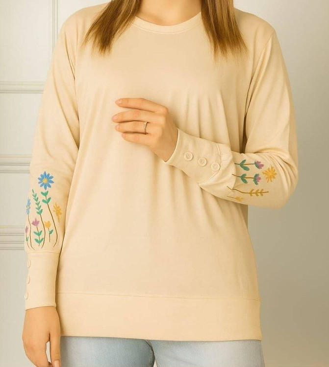 بلوز یقه گرد آستین سه دکمه طرحدار