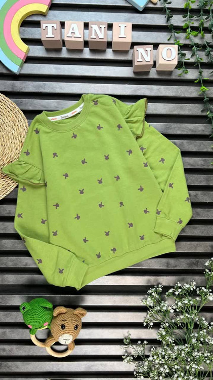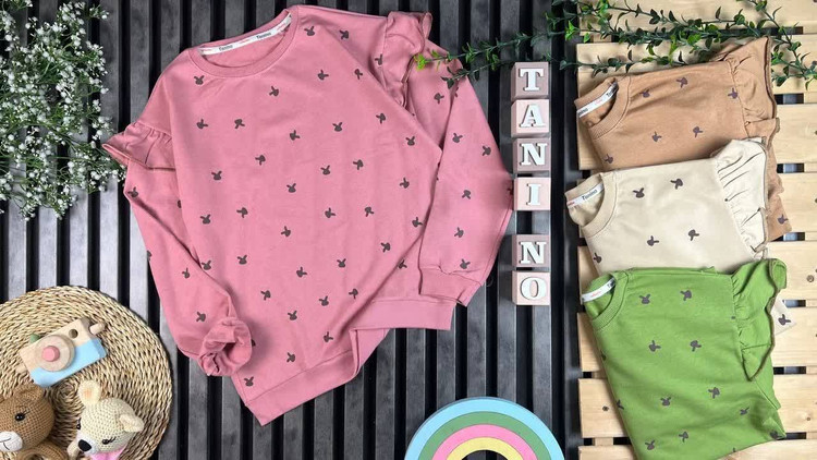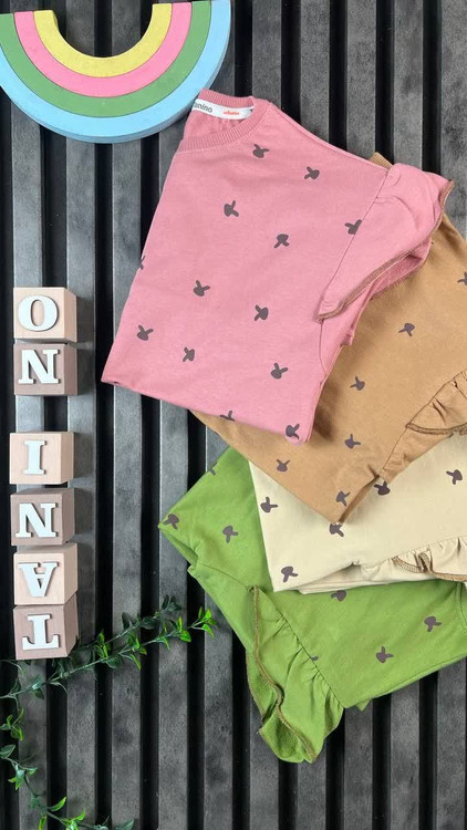بلوز پنبه‌ی دخترانه سرشونه چین‌دار طرح خرگوش