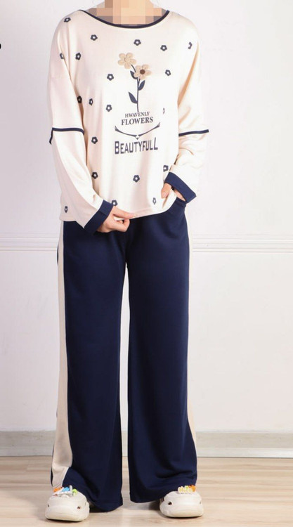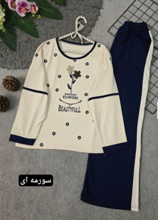 ست بلوز شلوار لانگ راحتی دورس گل تفنگی