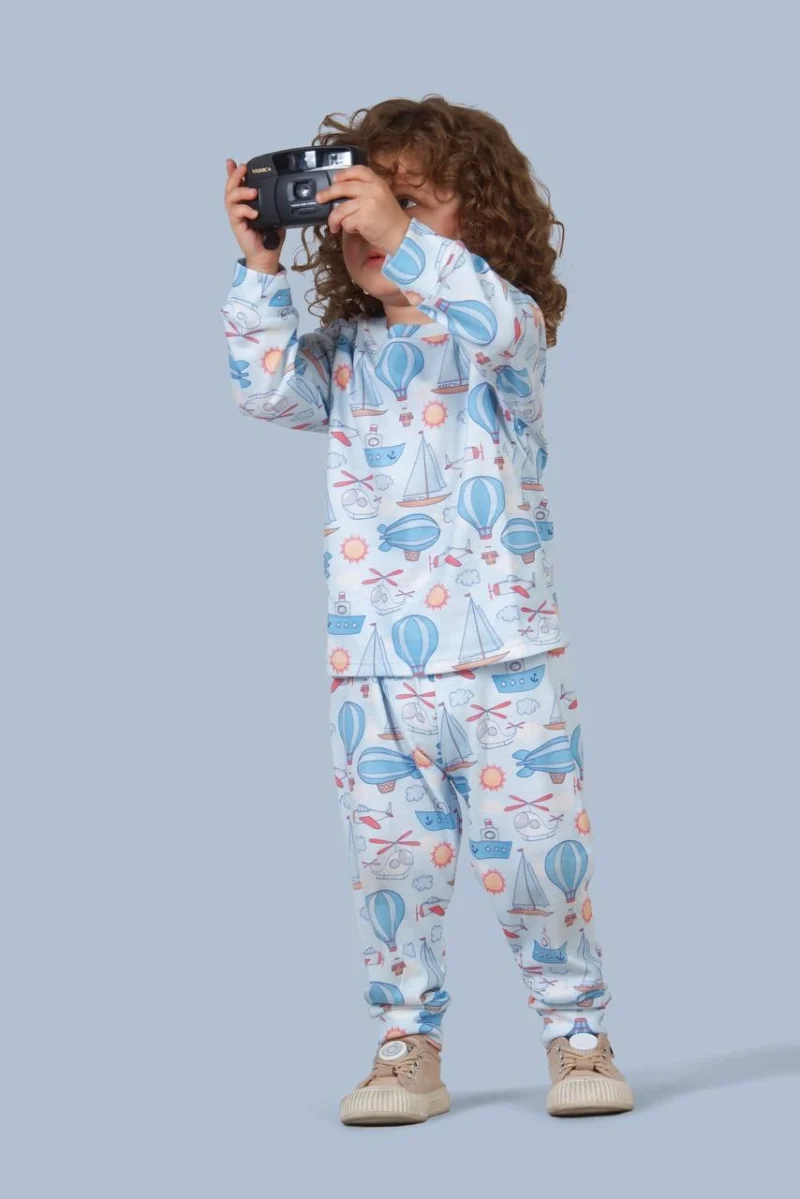 ست بلوز شلوار طرح بالن آبی