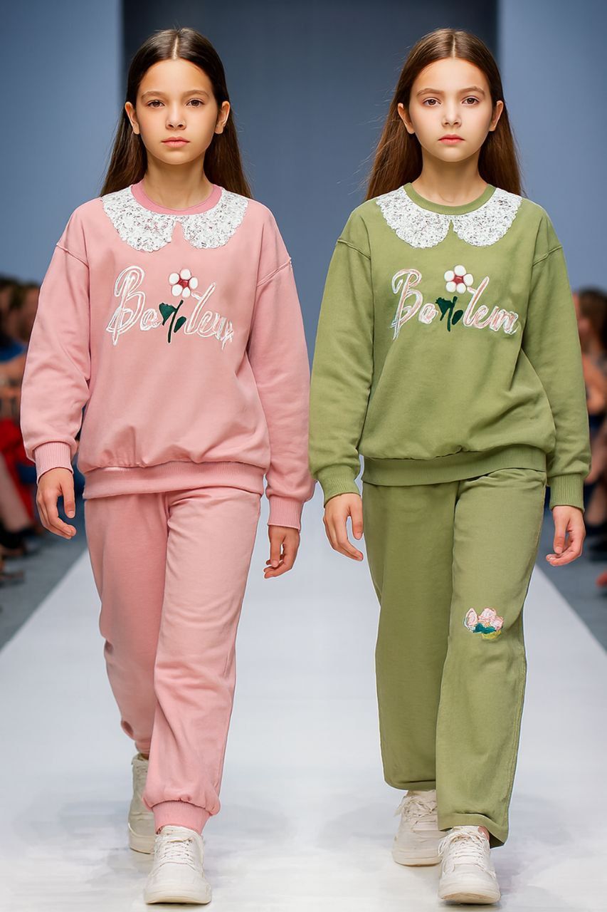 🌸 بلوز و شلوار دخترانه یقه بب گیپوری