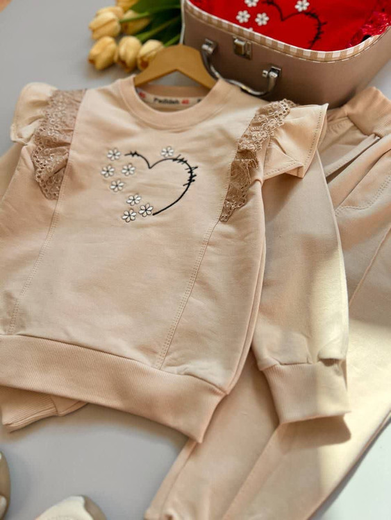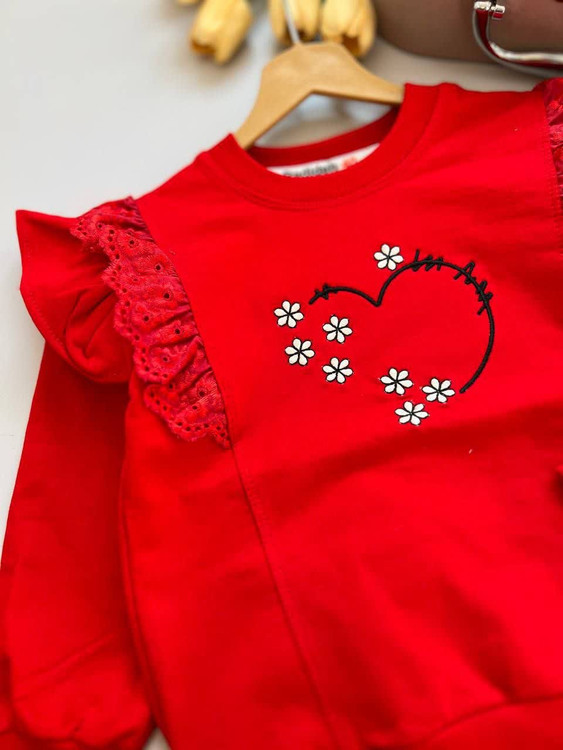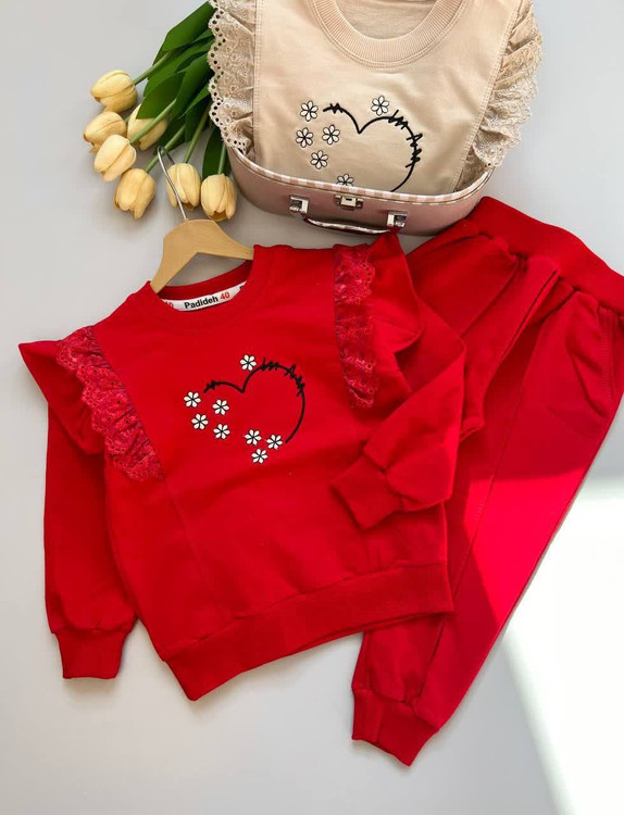 ست بلوز شلوار سرشونه چیندار قلب و گلی ❣