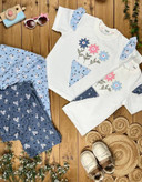 ست تیشرت شلوار دخترانه پنبه/ کاملت طرح گل و گلدان