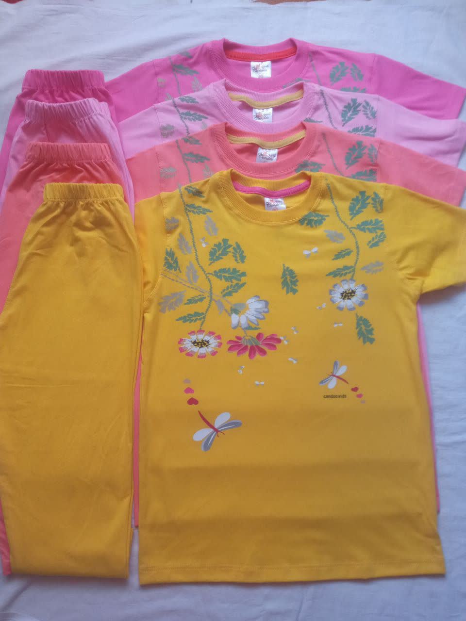 تیشرت شلوارک دخترانه پنبه‌ی طرح گل و سنجاقک