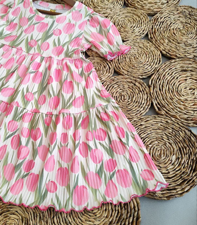 پیراهن پنبه ریلی طرح گل و شکوفه