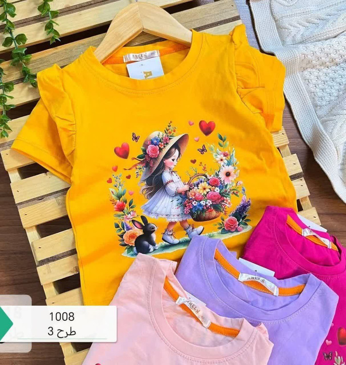 تیشرت تک سرشونه چیندار چاپ دخترونه