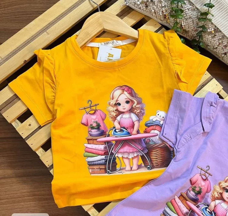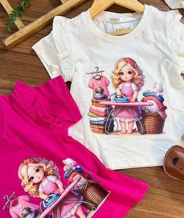 تیشرت تک سرشونه چیندار چاپ دخترونه😍