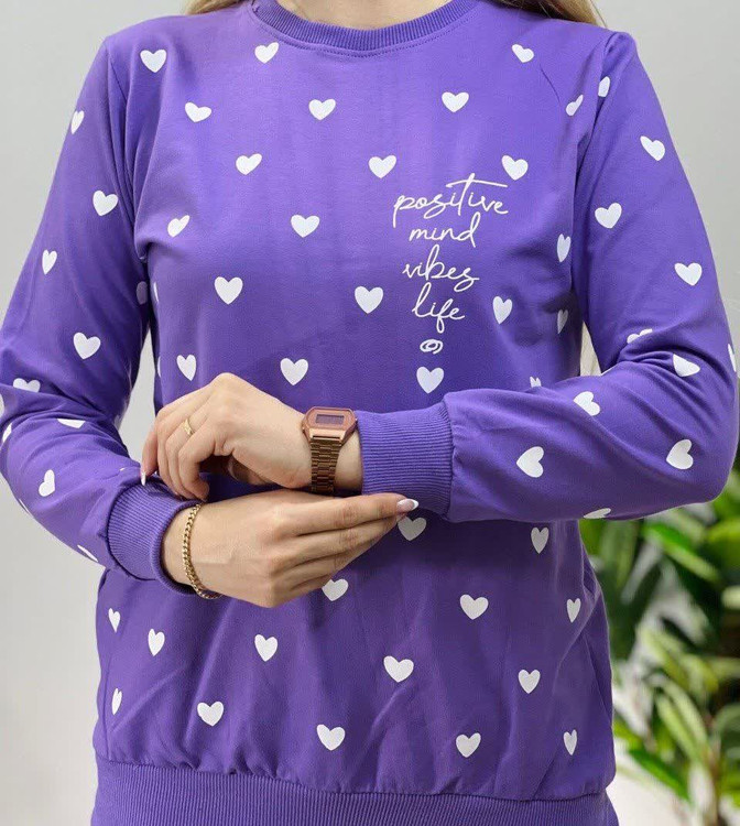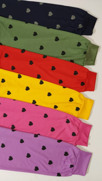 ** فقط قسمت آستین بلوز طرح قلب دارد و قسمت تنه ی لباس ساده و بدون طرح است**