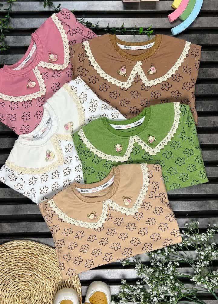 بلوز دخترانه پنبه ی یقه ب‌ب طرح گل