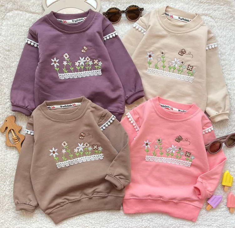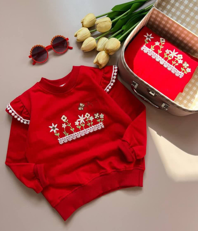 بلوز تک گل و پروانه گلدوزی سرشونه پیلدار