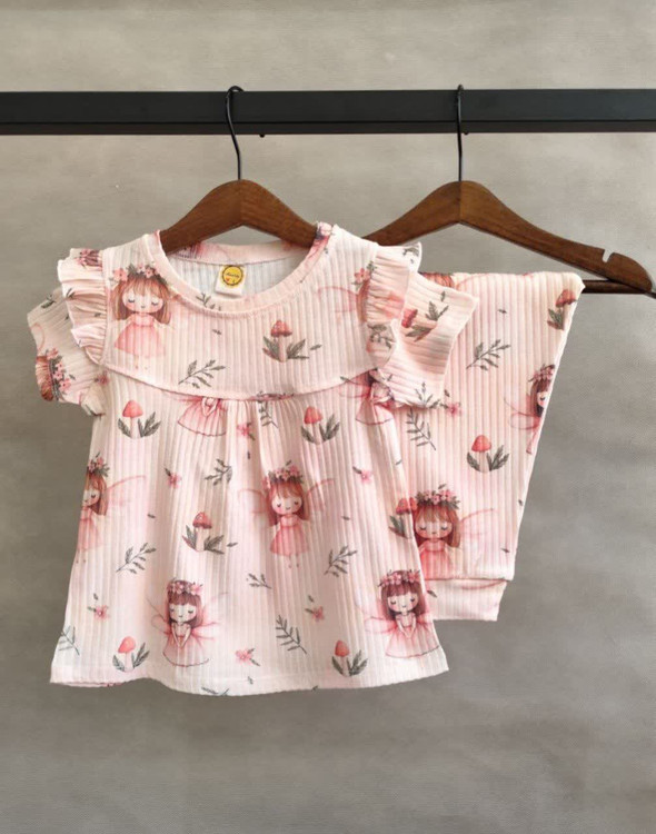 ست راحتی آستین کوتاه شلوار ریلی دخترانه