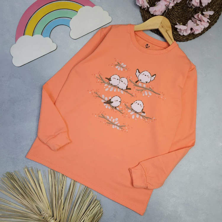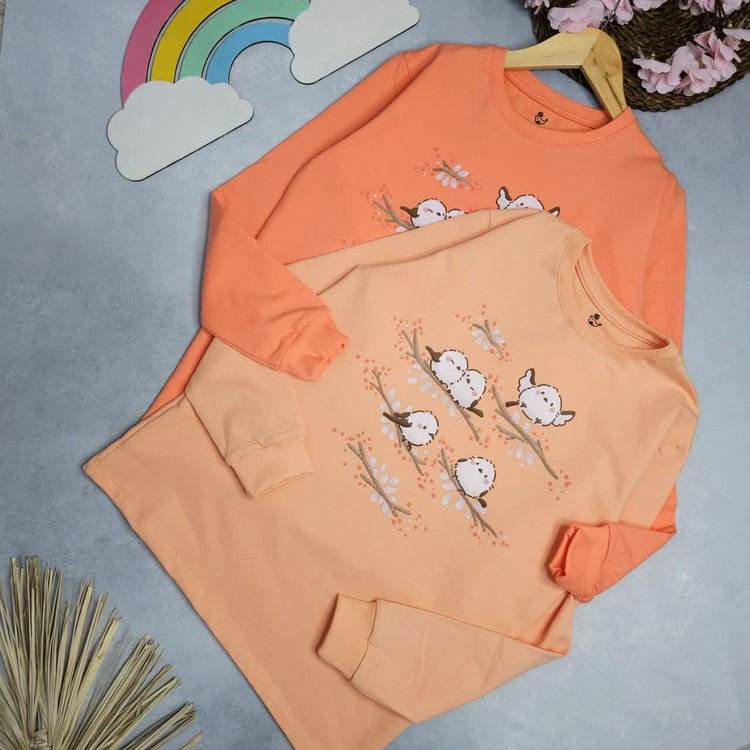 بلوز آستین بلند دخترانه ی پنبه ی طرح جوجه و شکوفه